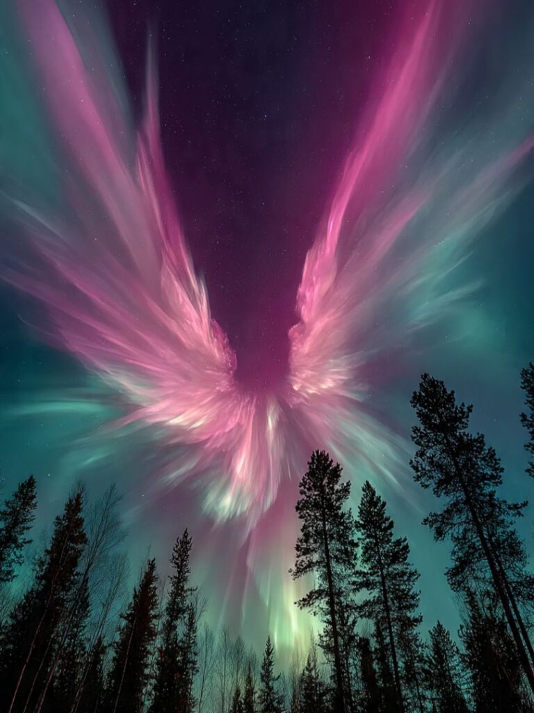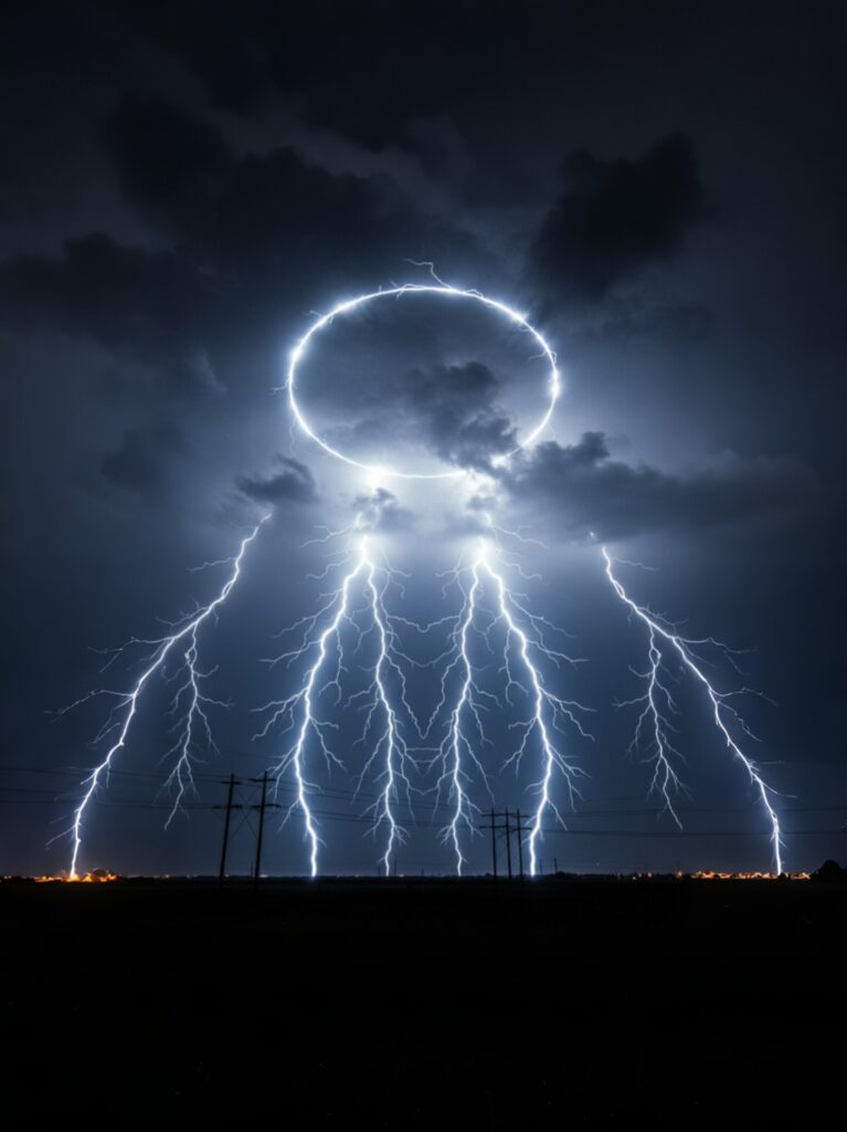 . But tonight the sky went a step further — a radiant moonbeam spilled downward onto the statue while a glowing halo circled the Moon like a celestial crown ✨.